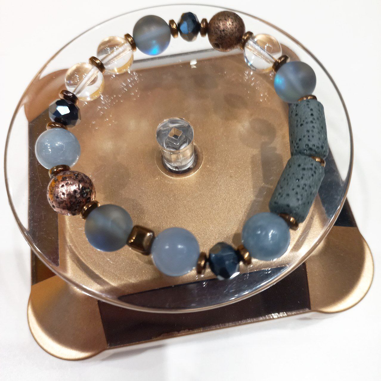 Браслет собран на эластичной силиконовой резинке, которая позволяет легко снимать и надевать его.